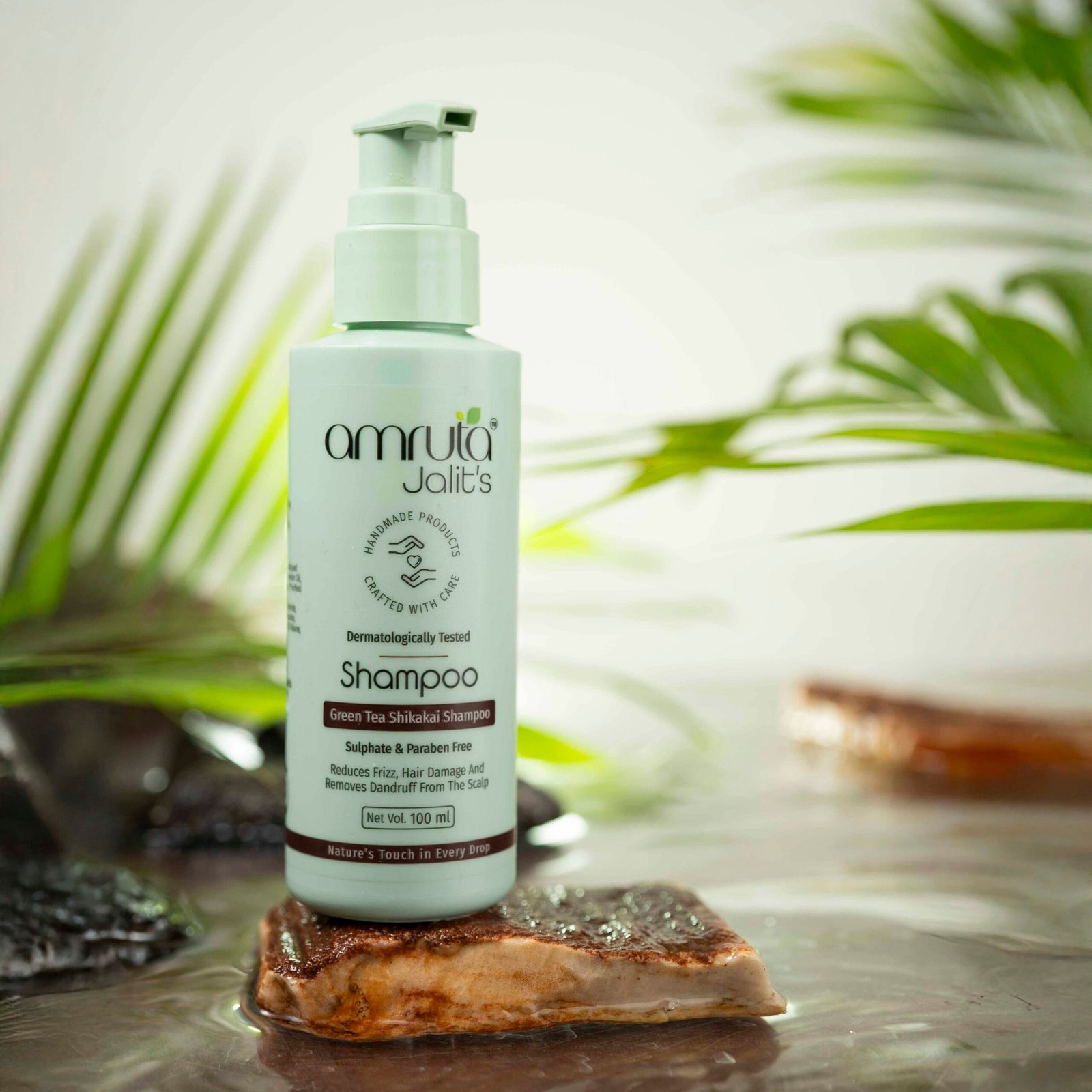 Top SellingAmruta Jalit’s Green Tea Shikakai Shampoo is a gentle yet effective hair cleanser crafted with nature’s finest ingredients. Enriched with the goodness of green tea and shikakai, this sulphate- and paraben-free formula helps reduce frizz, prevent hair damage, and eliminate dandruff right from the scalp. Dermatologically tested and handmade with care, it ensures a soothing cleanse that retains the hair’s natural oils, leaving your scalp refreshed and your strands soft, shiny, and full of life. Suitable for all hair types, this shampoo is your daily dose of herbal nourishment, bringing out the best in your hair, naturally.