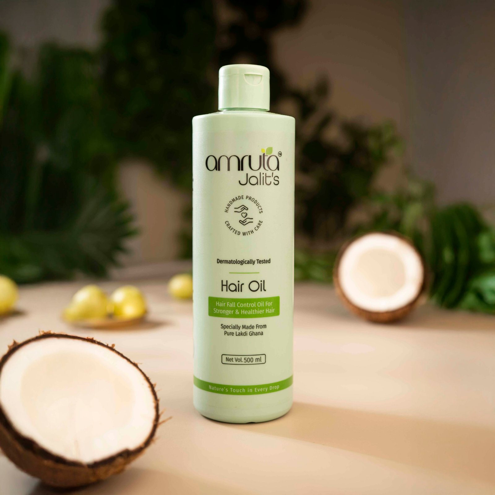 Amruta Jalit’s Hair Oil is a premium, handmade blend infused with traditional lakdi ghana (wooden churned) extracts to deeply nourish the scalp and hair. Crafted using time-honored Ayurvedic methods, this herbal oil strengthens roots, promotes hair growth, and reduces hair fall naturally. It helps restore moisture, improve scalp health, and add a natural shine to your locks without any greasy residue. Free from sulfates, parabens, and synthetic additives, Amruta Jalit’s Hair Oil is the ideal choice for those seeking a pure, chemical-free hair care solution. Perfect for regular use across all hair types.
